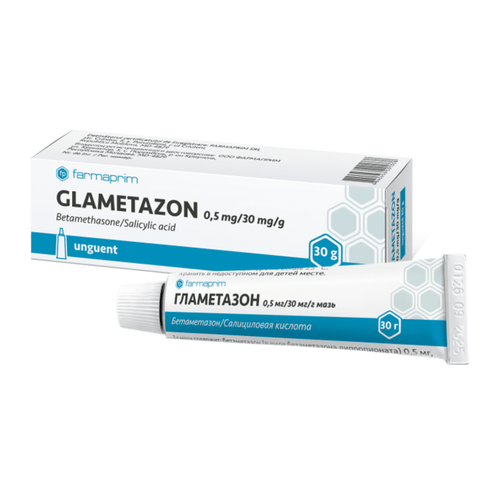 Мазь для наружного применения – 1г мази содержит 0,5мг Бетаметазона (в виде Бетаметазона дипропионата) + 30мг Салициловой кислоты.