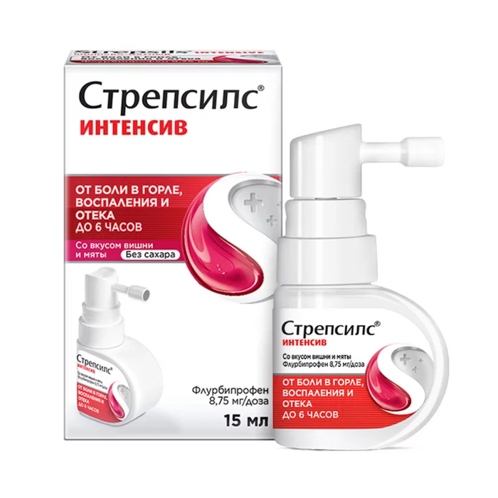 Спрей дозированный для орошения горла – 1 доза раствора содержит 8,75мг Флурбипрофена; раствор - с добавлением ароматизаторов.