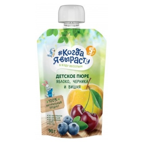 "Когда я вырасту" пюре 90г (пауч) яблоко-вишня-черника (с 5 мес)