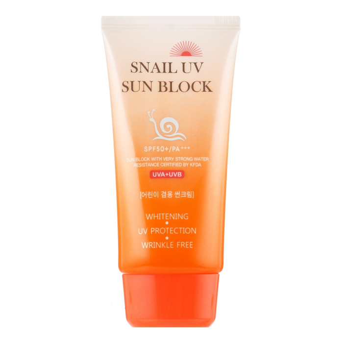 Солнцезащитный крем с муцином улитки Jigott Snail UV Sun Block SPF 50+/PA+++ - увлажняющий крем, с нежной легкой текстурой, не только эффективно защищает кожу от пагубного воздействия UF-лучей, но и превосходно ухаживает за ней, способствует разглаживанию морщин и осветлению пигментации, улучшая цвет лица.